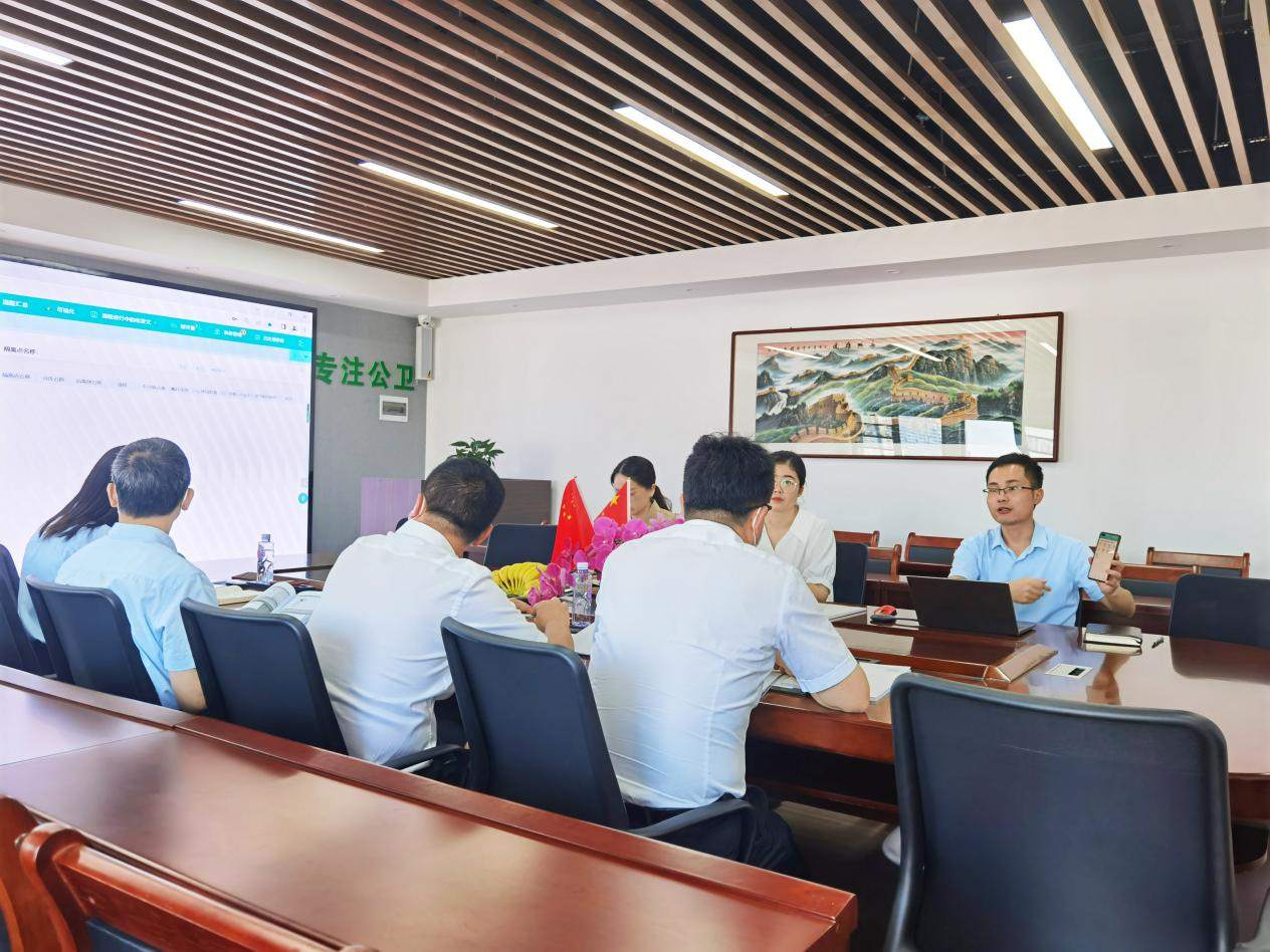 座談中,首先綜合辦代表公司歡迎熊科長一行數人不辭辛苦蒞臨公司考察、指導,并向各位領導匯報公司發展、經營狀況、全國市場覆蓋等做了詳細的匯報。最后,石總對“公共衛生智慧一體化綜合管理平臺”軟件進行了演示匯報,著重對應急管控平臺、現場流調、可視化決策分析平臺等著重詳細匯報。