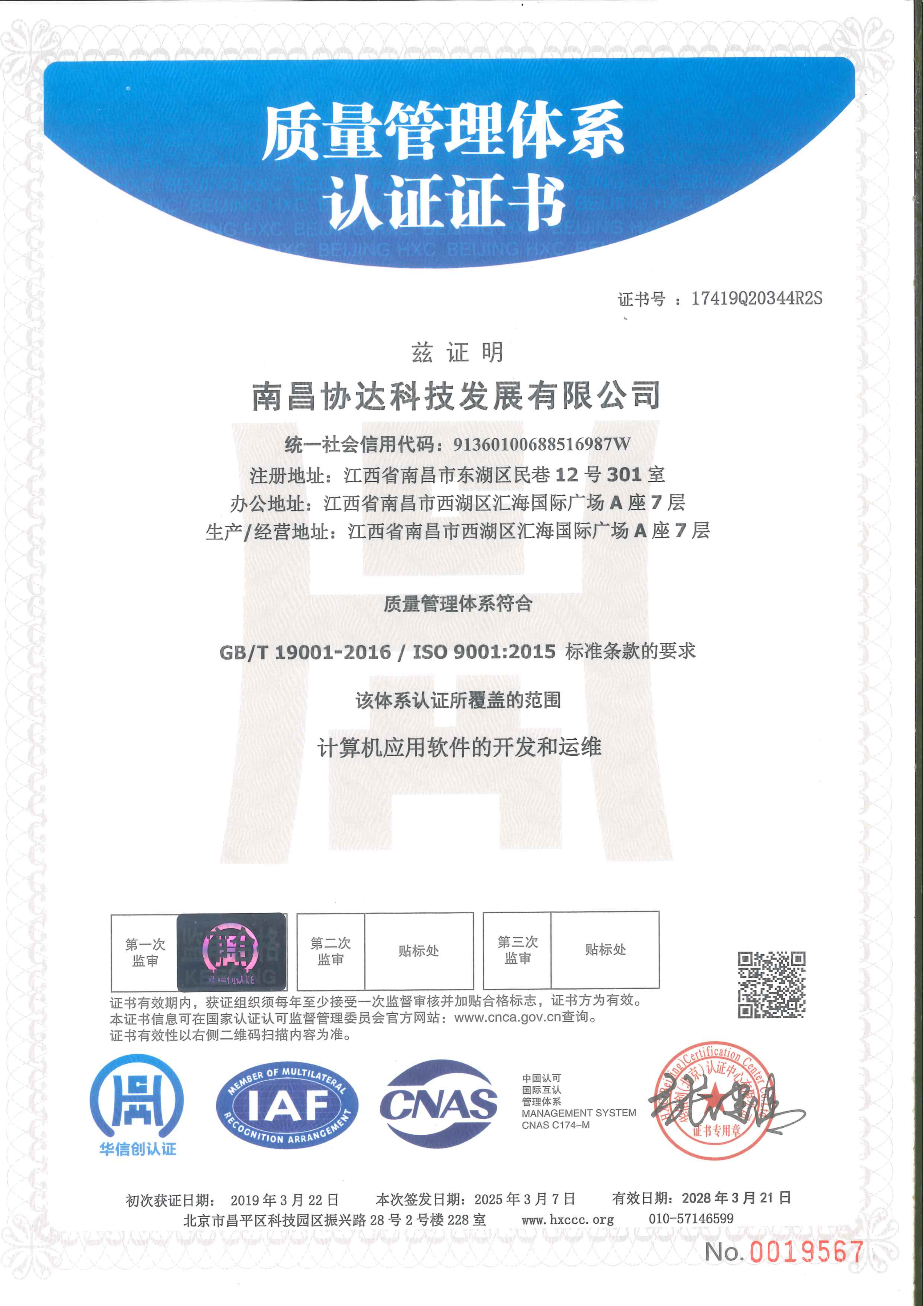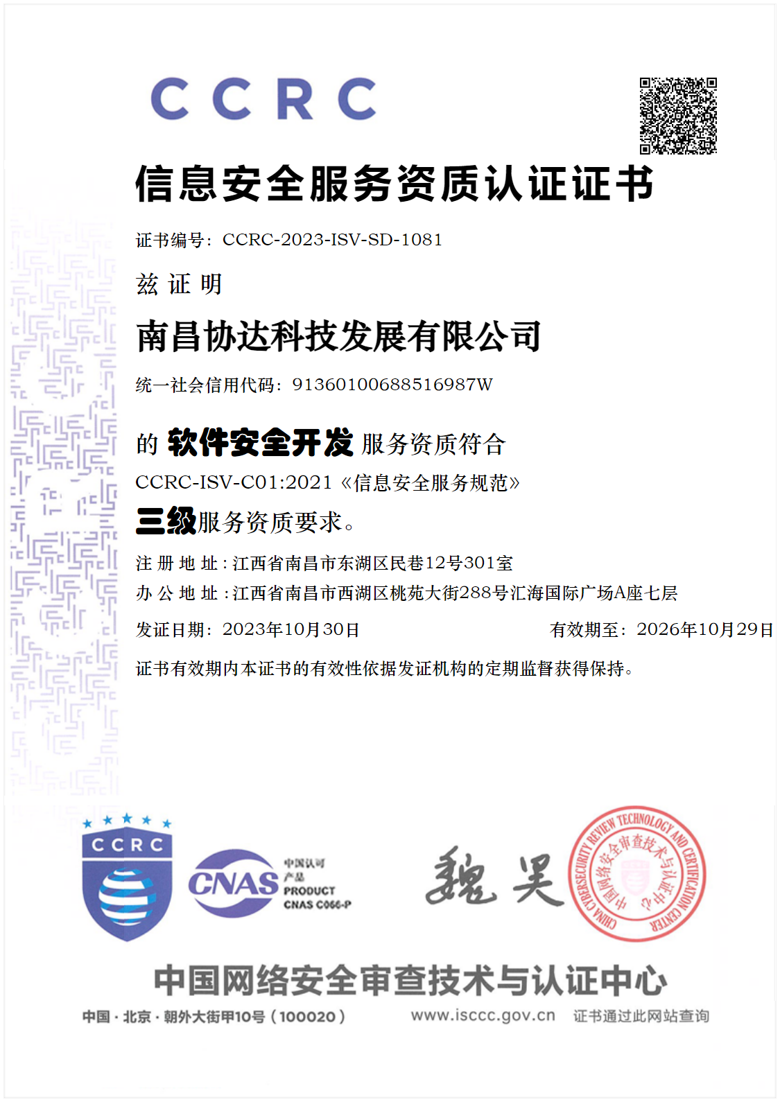 協達科技成立于2009年5月,憑借高端的軟件研發技術及先進的管理理念順利通過保密資質、國家高新技術企業資質認定及江西省“專精特新”中小企業資質認定,先后獲得CMMI3級證書、ITSS運維服務、CCRC軟件安全開發、ISO27017、ISO27001及三體系認證證書等。