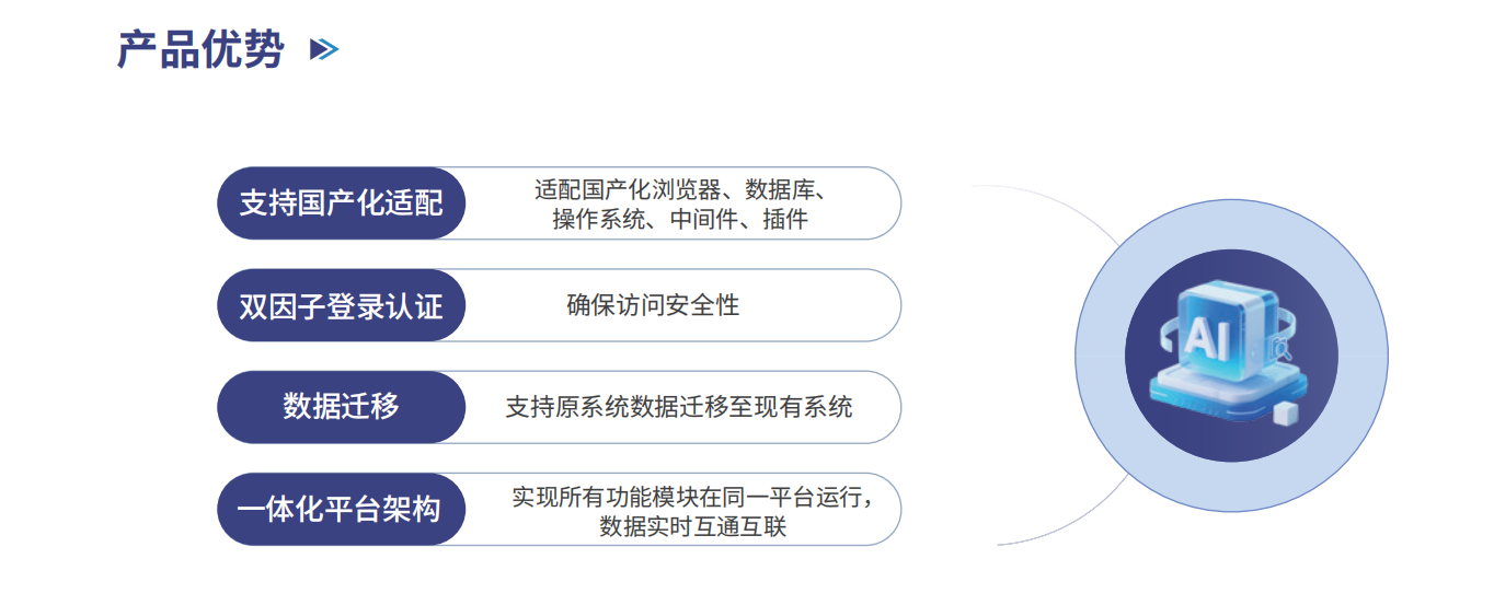 平臺(tái)覆蓋 WEB、移動(dòng)端、CMS 門戶,實(shí)現(xiàn)業(yè)務(wù)閉環(huán)與數(shù)據(jù)互通,滿足平臺(tái)內(nèi)數(shù)據(jù)無縫銜接,解決 “數(shù)據(jù)孤島”局勢(shì)。擁有自主知識(shí)產(chǎn)權(quán)工作流引擎、表單構(gòu)建器、報(bào)表設(shè)計(jì)器,支持業(yè)務(wù)功能無限擴(kuò)展,適配省-市-區(qū)(縣)三級(jí)部署。利用AI大模型、大數(shù)據(jù)、數(shù)字孿生、隱私計(jì)算,打造 “數(shù)據(jù)中樞 + 智能引擎 + 協(xié)同網(wǎng)絡(luò) + 安全底座”四大核心產(chǎn)品矩陣,實(shí)現(xiàn)全棧國(guó)產(chǎn)化、全場(chǎng)景覆蓋,全流程閉環(huán)管理。